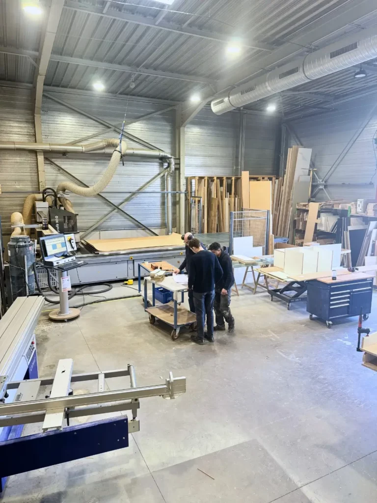 Implanté à Brignais, notre atelier est équipé pour produire des menuiseries et agencements sur-mesure de toute complexité.