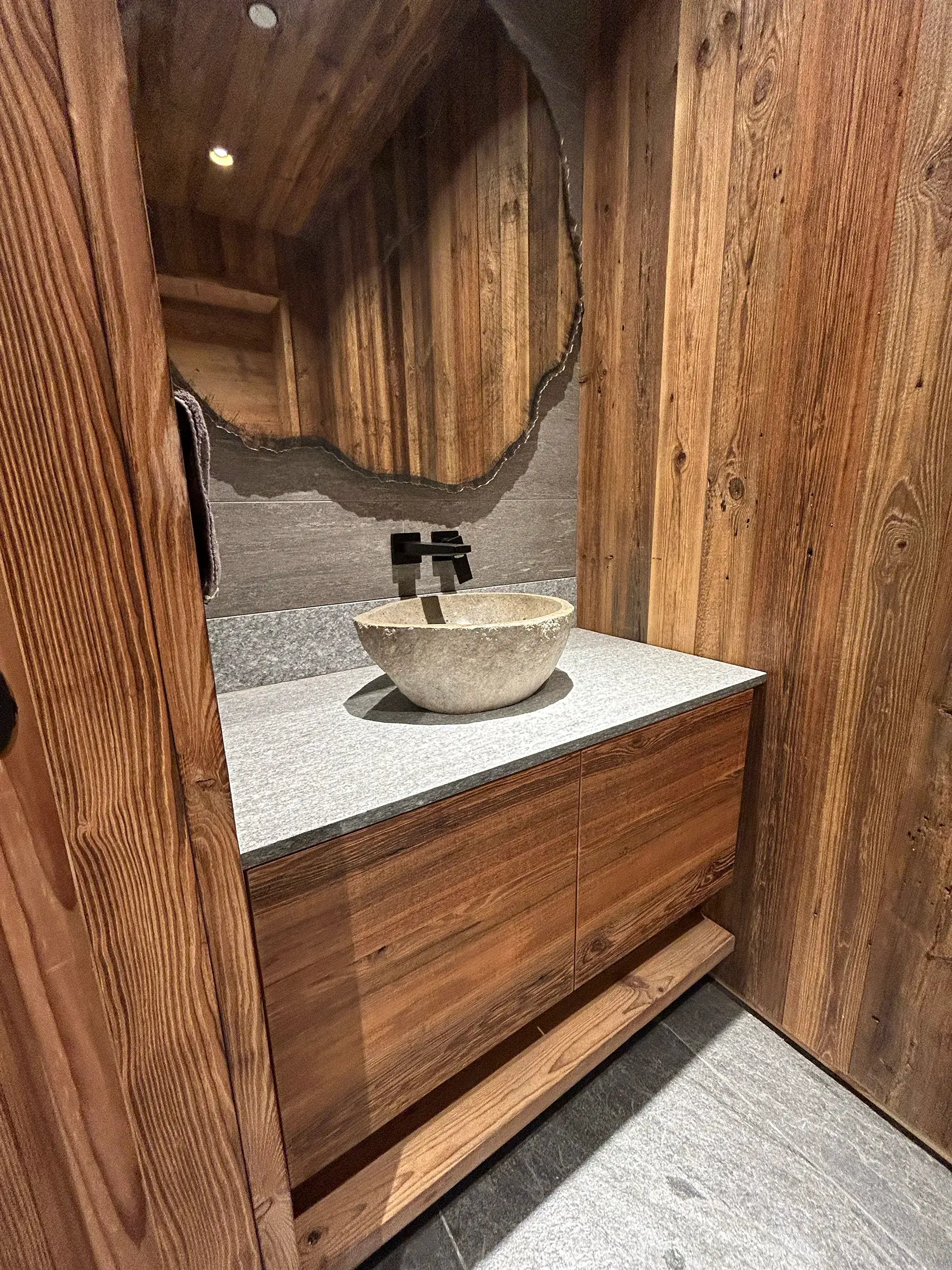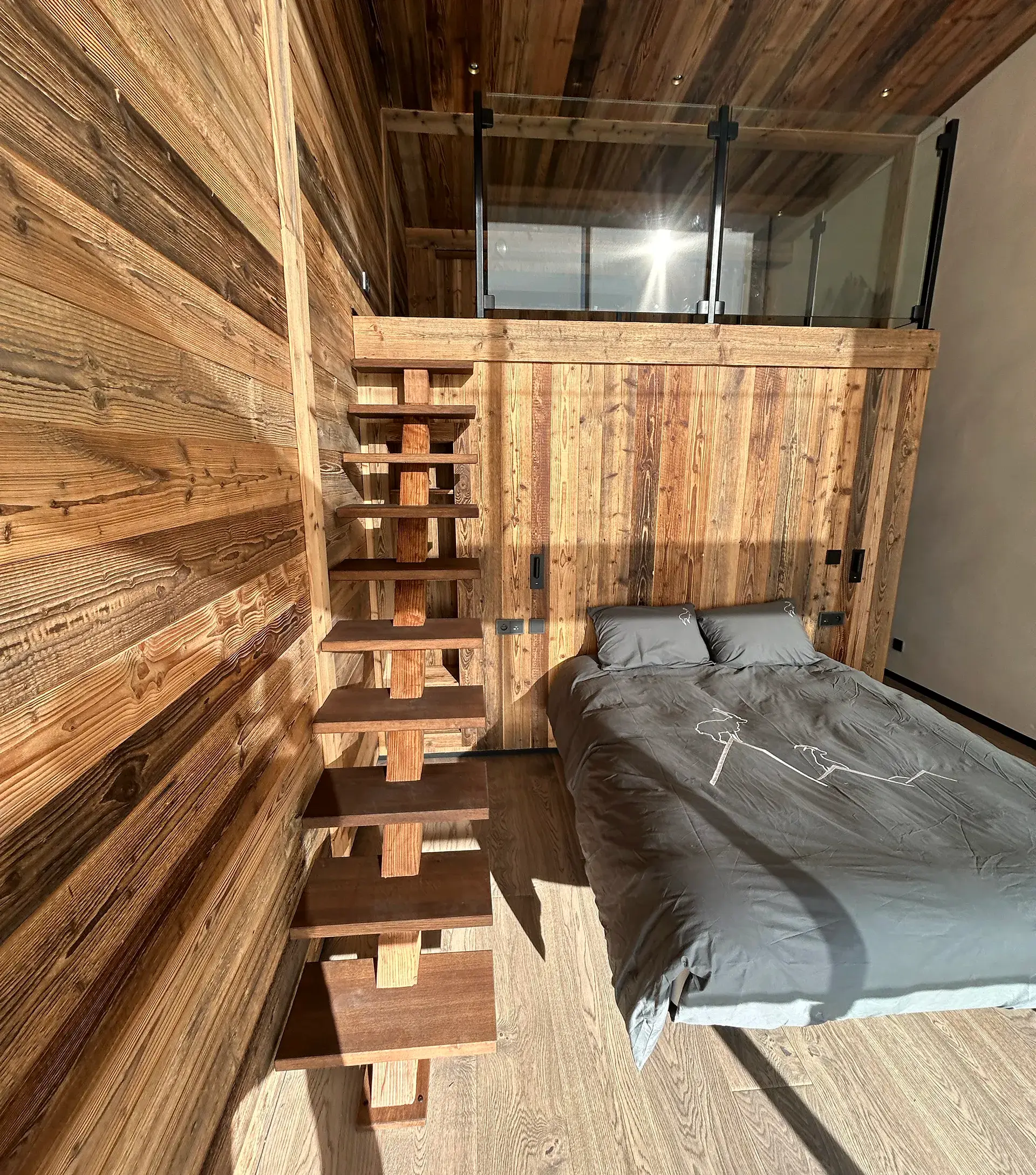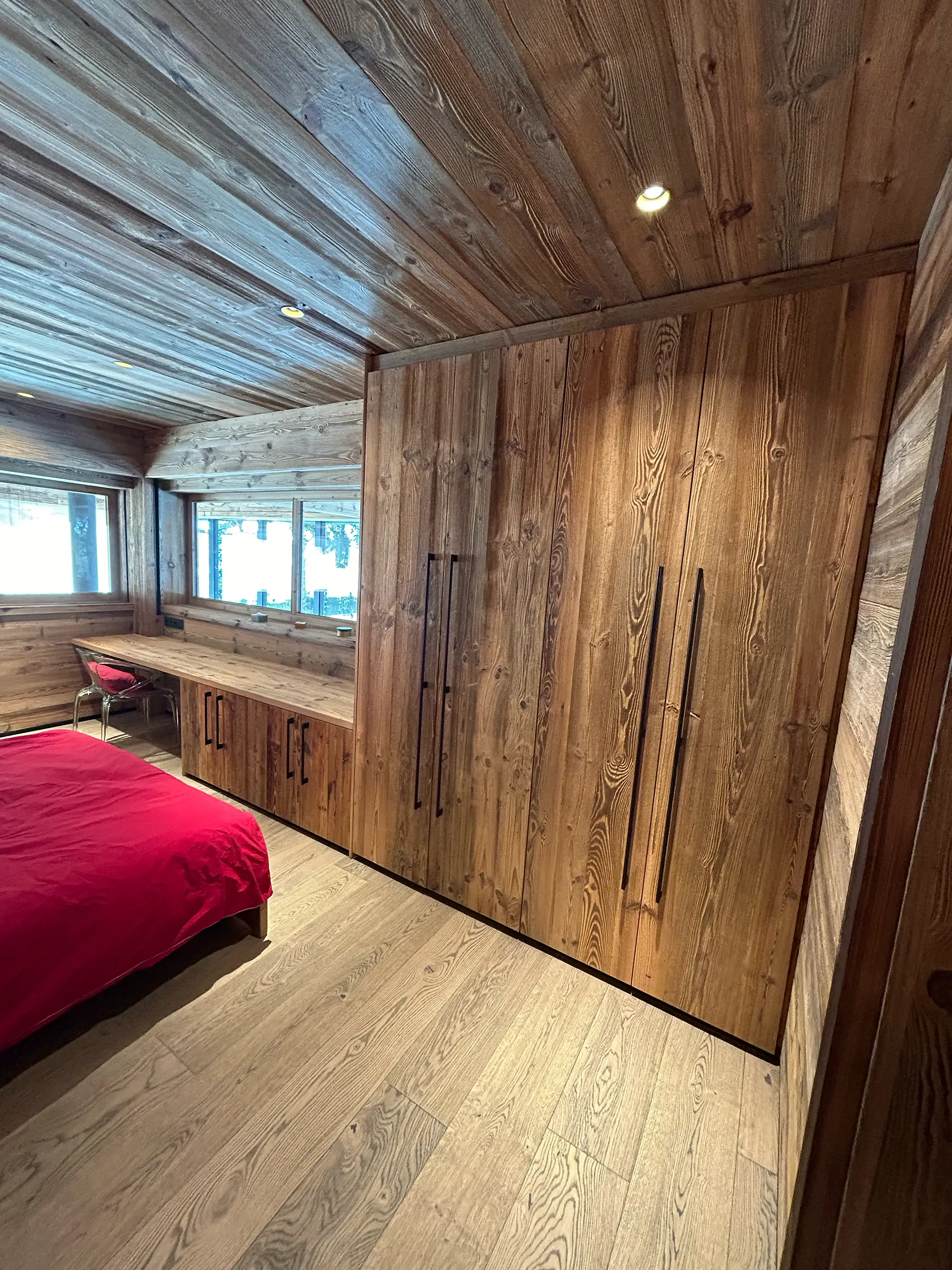 Du mobilier intégré aux rangements, en passant par les chambres et les salles d’eau, chaque réalisation trouve sa place avec justesse. Le bois, travaillé dans différentes teintes et textures, crée une continuité visuelle tout en apportant chaleur et caractère.