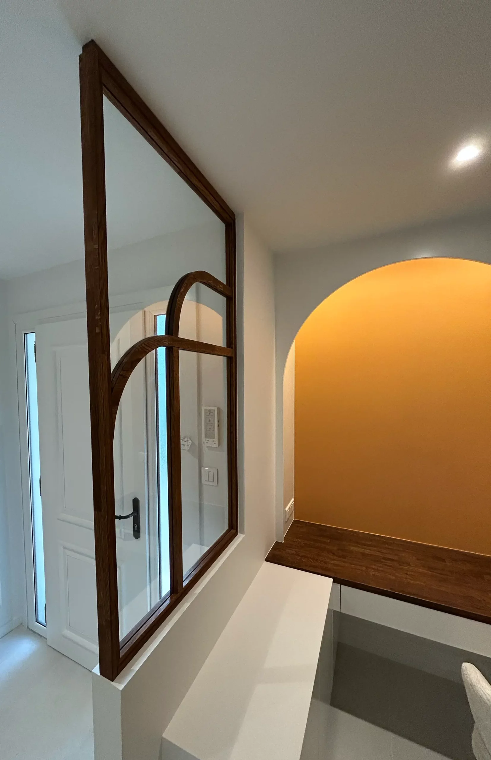 Le travail des arches et des lignes courbes apporte une identité forte au projet, en dialogue avec l’architecture existante et les usages du lieu.